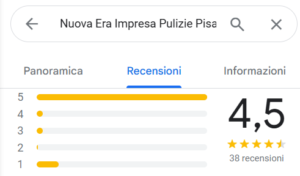 Ho usufruito del servizio della Nuova Era pulizie per aiutarmi nel difficile compito di ripulire un appartamento lasciato in condizioni pessime da ex inquilini. Hanno fatto un lavoro ottimo e preciso. Esperienza, qualità e prezzo competitivo.